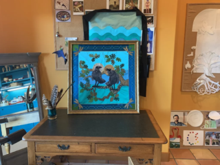 I have cultivated a relationship with them by fishing drown rodents from our pool and placing them on a platform that is easily visible and accessible to the Ravens. The bait disappears quickly, and the Ravens return every morning looking for their treat. If they see something in the pool and I have not fished it out for them, they come to get my attention by performing ariel acrobatics where they see me in the kitchen or studio. I think they have a special cackle call to remind me to look in the pool and honor our connection.